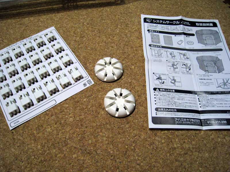 で、このシステムサークルを2セット買って、10枚+出入り口2枚。出入り口は使わず、部屋の中での柵にしようかと考えています。