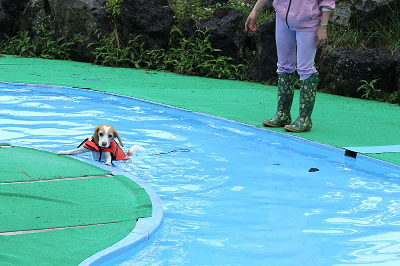 夏のドッグリゾートwoof(ワフ)その5 2014/7/29 2015/9/23 空豆・花豆 シェアする 昨日はいきなりの深いプールだったので、きょうは屋外の小型犬用プールで遊びます。 花豆は、幅の短いところを渡る練習をしています。 よっこいしょ・・・ 気分が乗らない空豆。ドッグランにいるおおきなワンちゃんのほうが気になるみたいです。 飼い主に従う花豆と、脱走を企てる空豆。 やっぱり外が気になる。 もうそろそろ帰ろうよ、とアピールする姉妹。 ホント、疲れるんですよ水泳は・・・。 空豆さん、シャワー浴びるとずいぶんしぼむねえ。 おうちに帰ると、即、熟睡(*^_^*)。